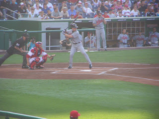 Nats up 4-3. It was Dunn's second home run of our trip, as he had hit one on Sunday vs. the Orioles. Dunn would be the center of a mini argument that I had with a Nationals fan in the top of the fourth. After Chipper Jones tied the game at four with a single,